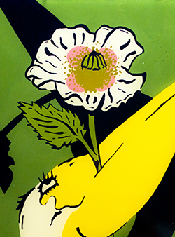 Reverse painted on reclaimed glass with 1 Shot enamels and gilded with 23crt and 12crt gold leaf on reclaimed glass. From a hand-drawn sketch based on an original...