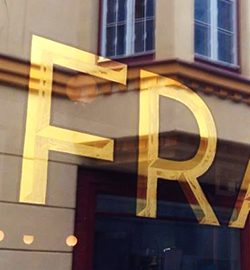 23crt gold leaf window signage for the best cocktail bar in the Baltics – Frank on Sauna Street, Tallinn. The erustic bevel effect in the lettering was created...