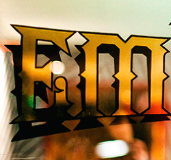 23crt gold leaf window signage for one of Tallinn's best hostels - Red Emperor. The outline and curving drop shadow were all done in Sericol PS ink before applying...