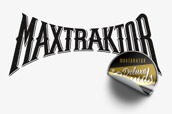 A logo and sticker set for a band, Maxtraktor, inspired by retro labels and comic book headlines.