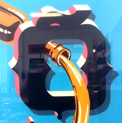 23crt gold leaf and black 1 Shot enamel reverse painted sign on reclaimed glass. From a hand-drawn sketch and inspired by traditional Russian advertising for kbac...